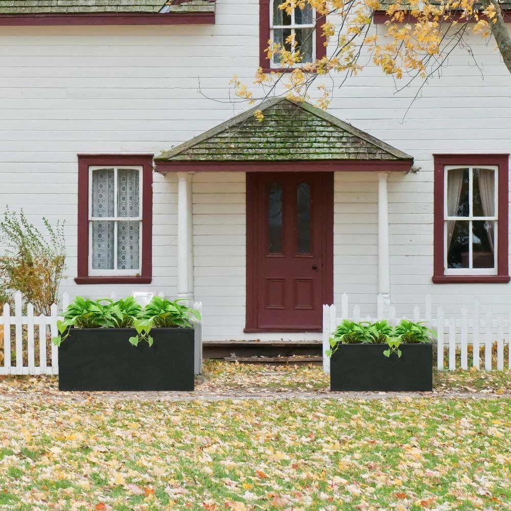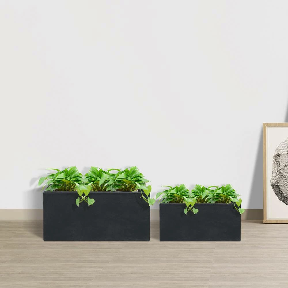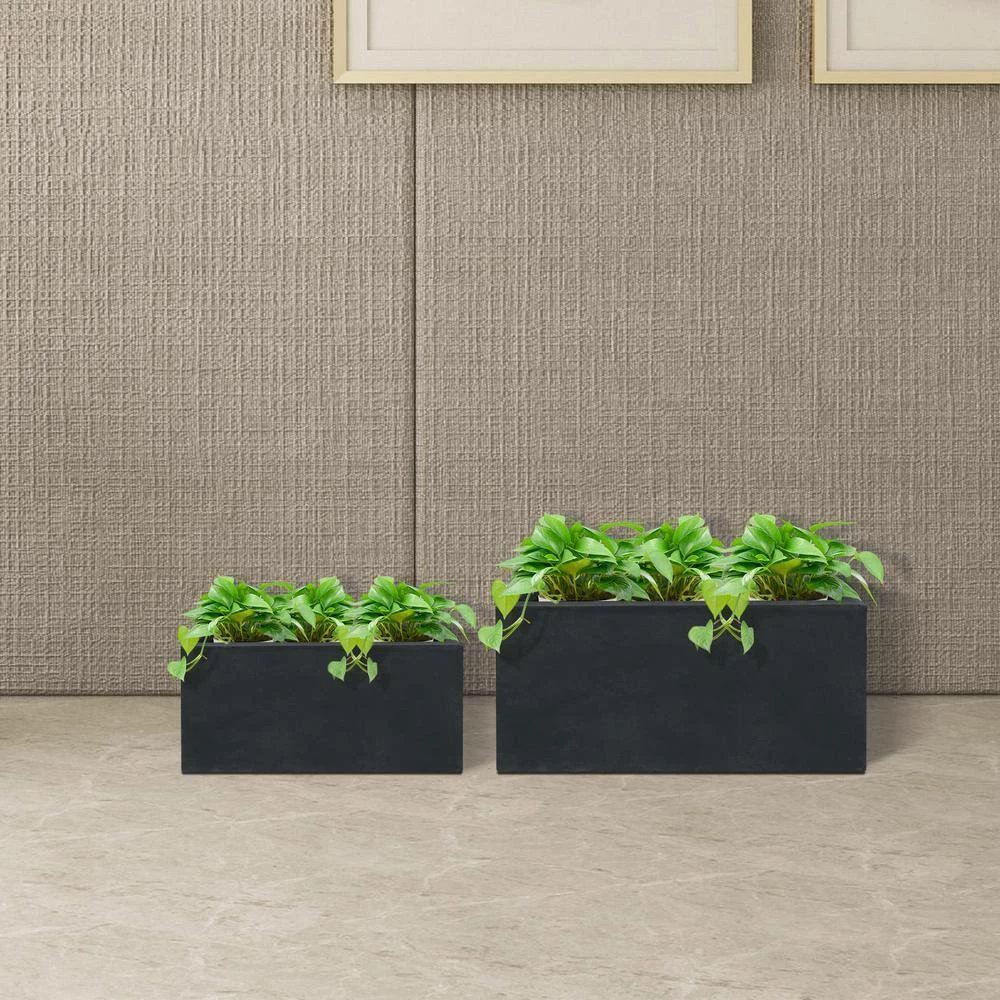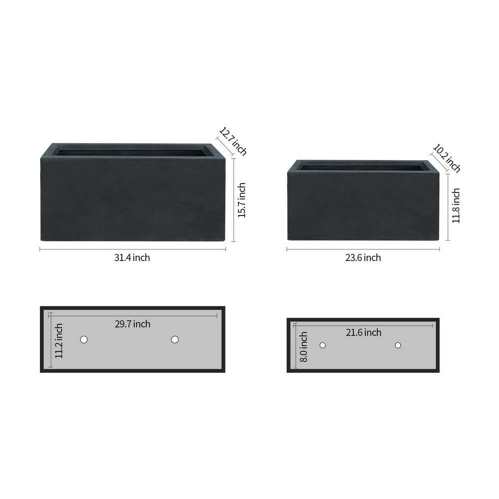 KANTE 31.4 in. & 23.6 in. L Rectangular Charcoal Lightweight Long Low Planters w/Drainage Hole (Set of 2), Outdoor/Indoor