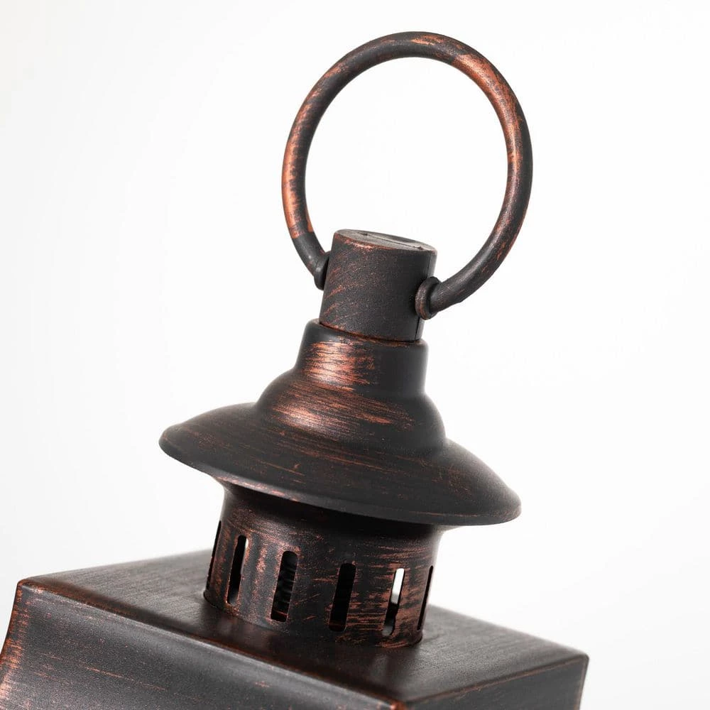 Our lanterns are hand painted with a distinguished rustic metal finish effect. The integrated pillar works with a single timer and 1 set of batteries, making it effortless to bring the beauty of traditional candlelight to any setting. Ideal for small spaces and delightful as part of a table setting.