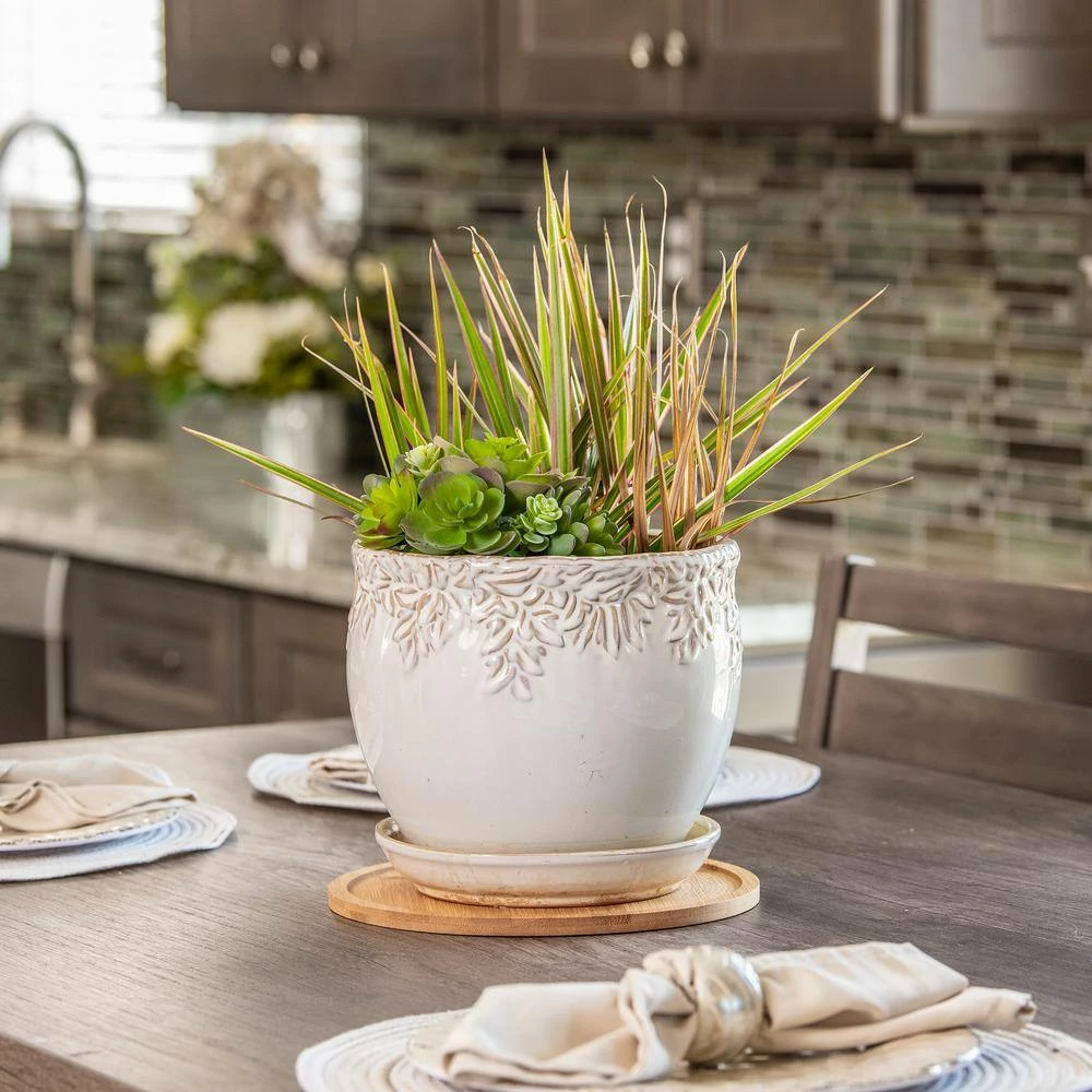 - Not designed to capture and hold excess water, due to the naturally absorbent nature of bamboo, this saucer should be in dry environments