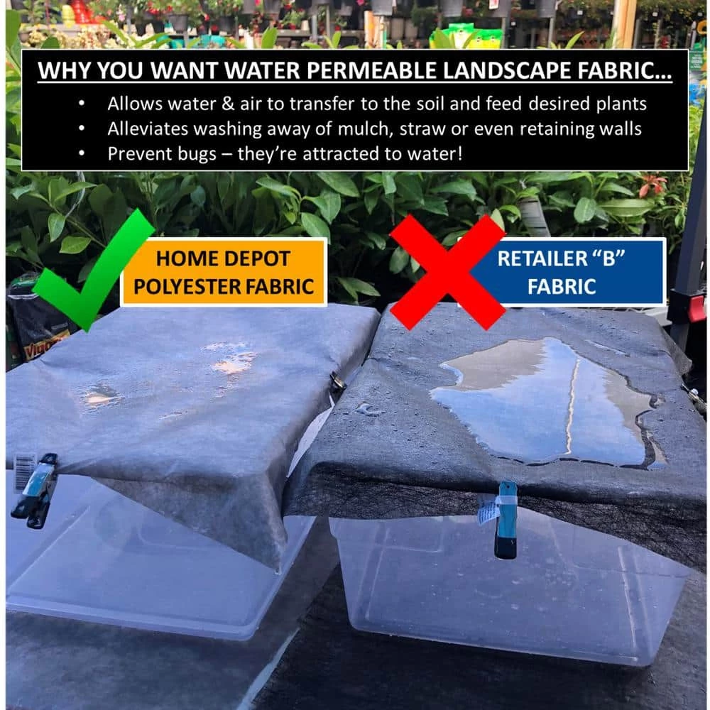 Heavy duty weed barrier material covers up to 400 sq. ft.